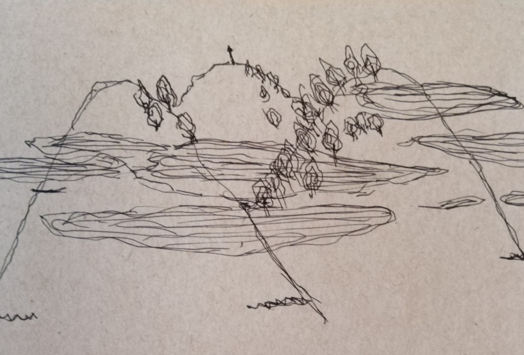 Hace algunas semanas hice el ejercicio de dibujar ese lugar de la montaña. Ese lugar preciso donde está mi farolito.