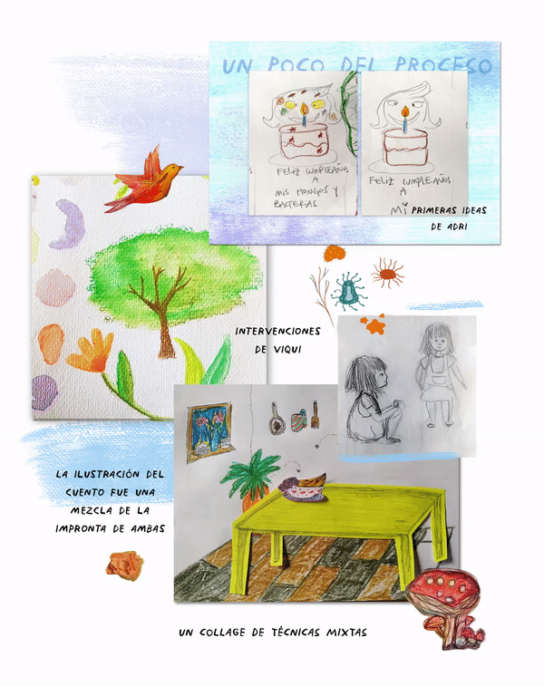 Este texto, escrito por Adri y diagramado e ilustrado por Viqui -con algunos aportes de Adri y Nina- nació de un trabajo en grupo de la Especialización. Un grupo de mujeres nos juntamos a pensar y crear una idea de cómo celebrar nuestros cumpleaños con la Tierra. Es decir, recordando que nuestra vida es posible gracias a la red de la vida que hay en la Naturaleza, y que, por lo tanto, al celebrar nuestra existencia podríamos también, celebrar también esa red. Esto nos llevó a señalar las prácticas contaminantes y consumistas de muchas fiestas actuales, que aunque con buenas intenciones, reproducen un sistema hostil con el resto del mundo vivo, generando basura, desperdicio y reforzando ideas de género, entre otras. Y luego, nos hizo pensar en cómo podríamos proponer alternativas a estas formas de festejar. Dentro de esas alternativas, nació este libro, en donde Viqui y Adri quisieron recordar esa conexión con el mundo y darle un espacio en la fiesta de una niña.