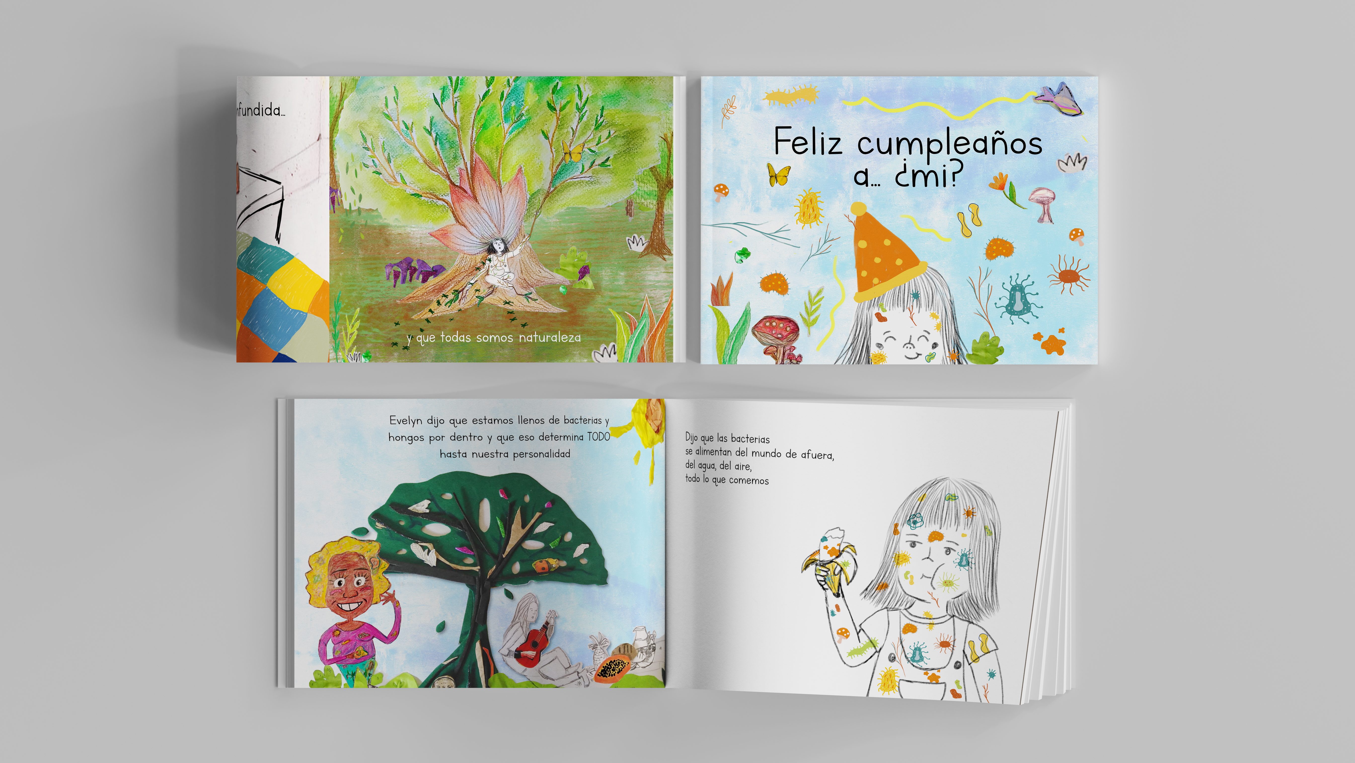 Este cuento abre las preguntas sobre la individualidad y la identidad. ¿Qué se significa ser «yo»? Esta pregunta es especialmente relevante en nuestras fechas de cumpleaños, porque son momentos en donde recordamos que un día nacimos e iniciamos un camino, que se nutre de nuestra idea de quienes somos. Sin embargo, parece que nosotras no somos un solo ser determinado, con límites tan claros, si pensamos en el mundo de los microorganismos, hongos y bacterias que nos habitan. Pero además, tampoco tenemos una personalidad que es solo «nuestra» si reconocemos la influencia de esos seres que están en nuestro interior y también en el mundo de afuera. ¿Cómo resolver entonces este intríngulis y celebrar una fiesta que recuerde esta red que hace la vida individual y colectiva posible y compleja a la vez?