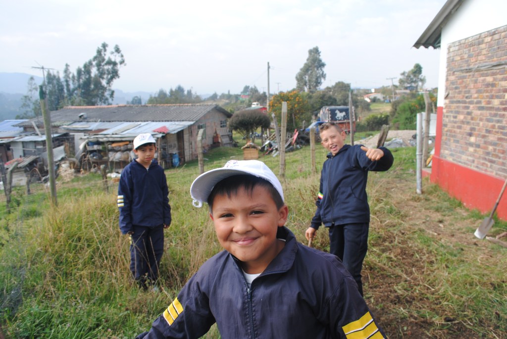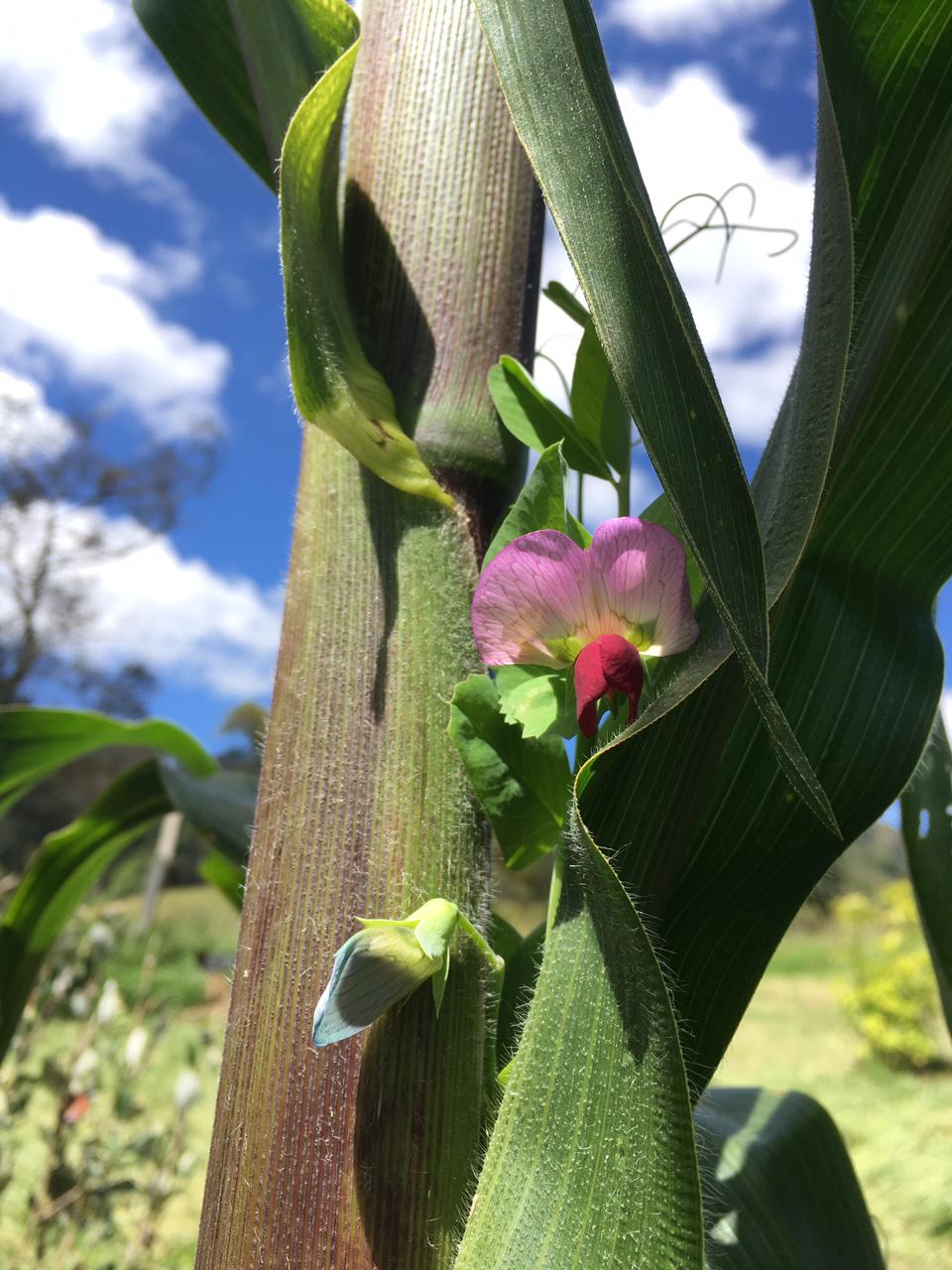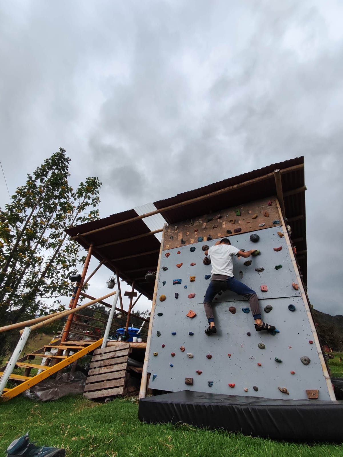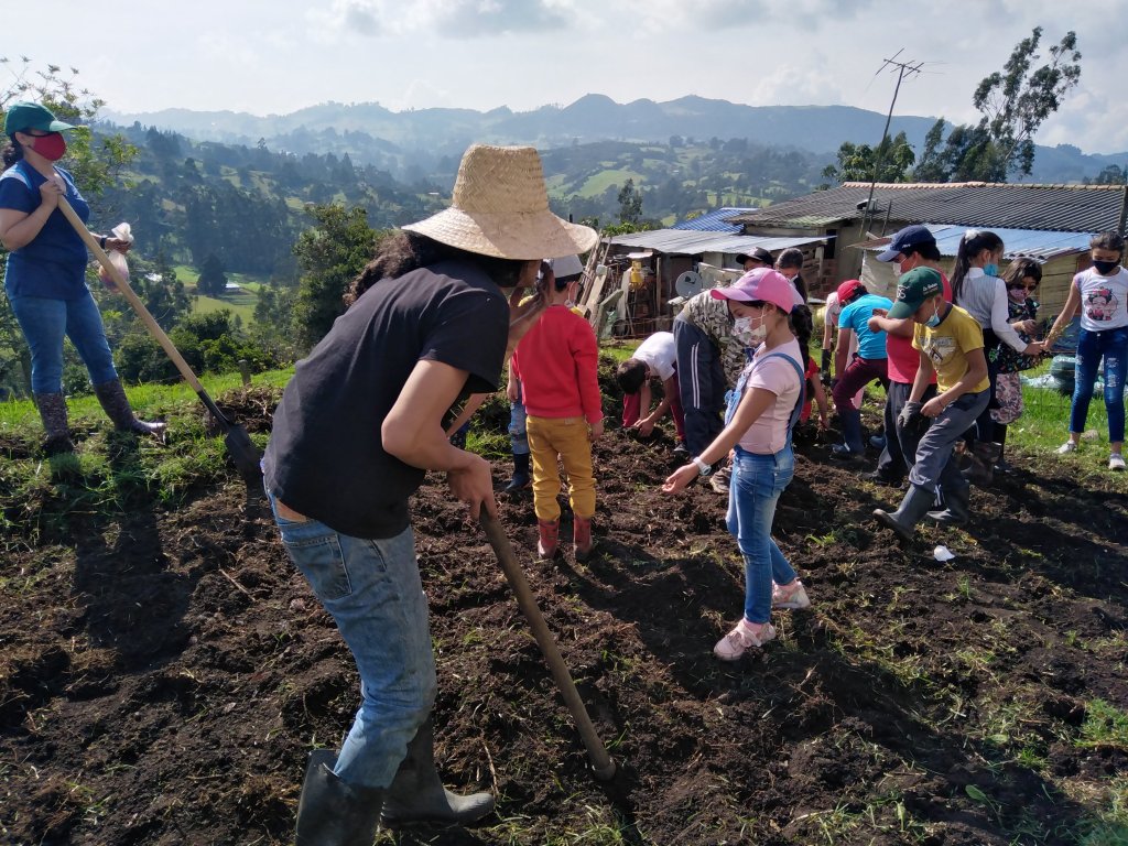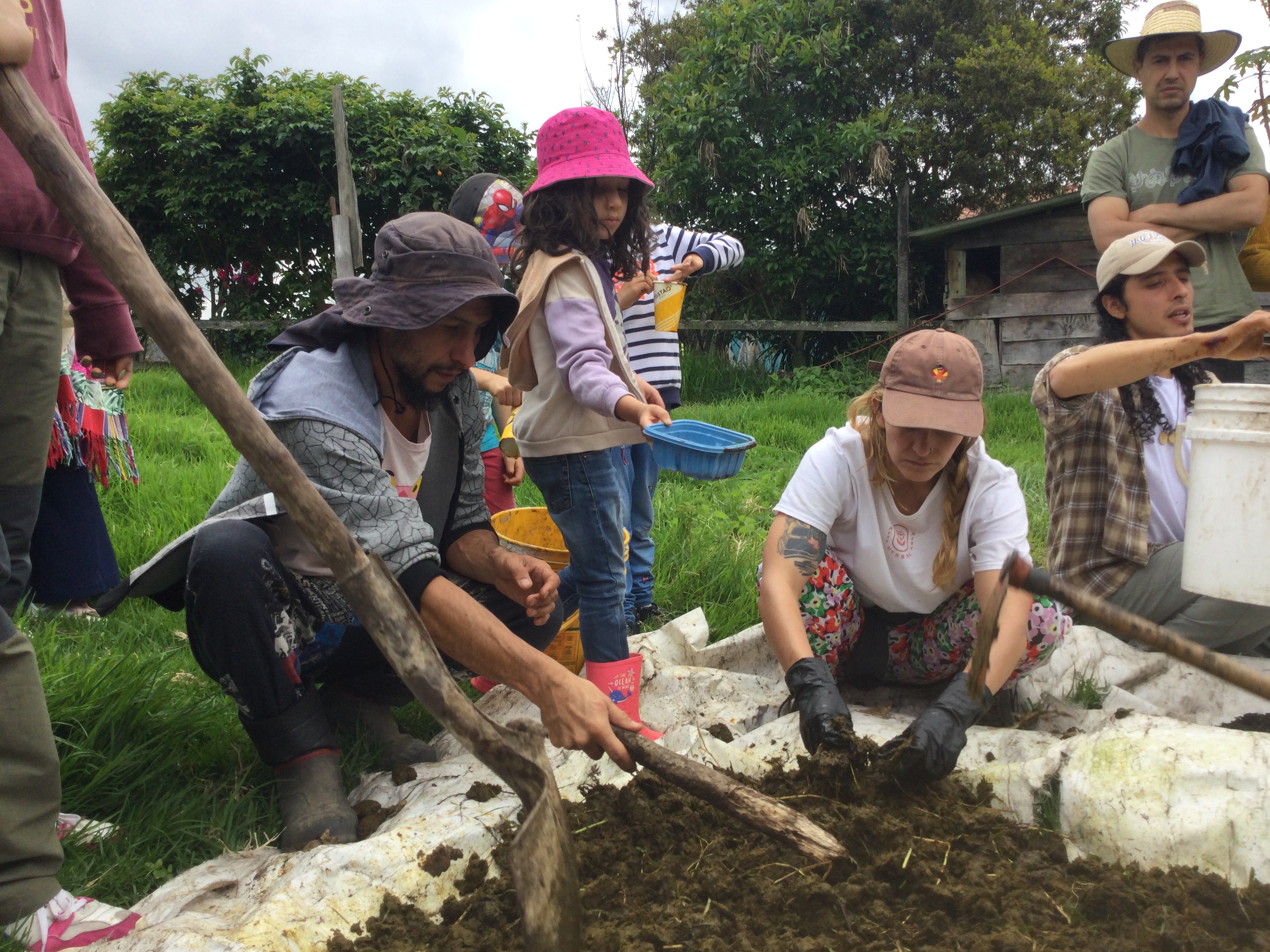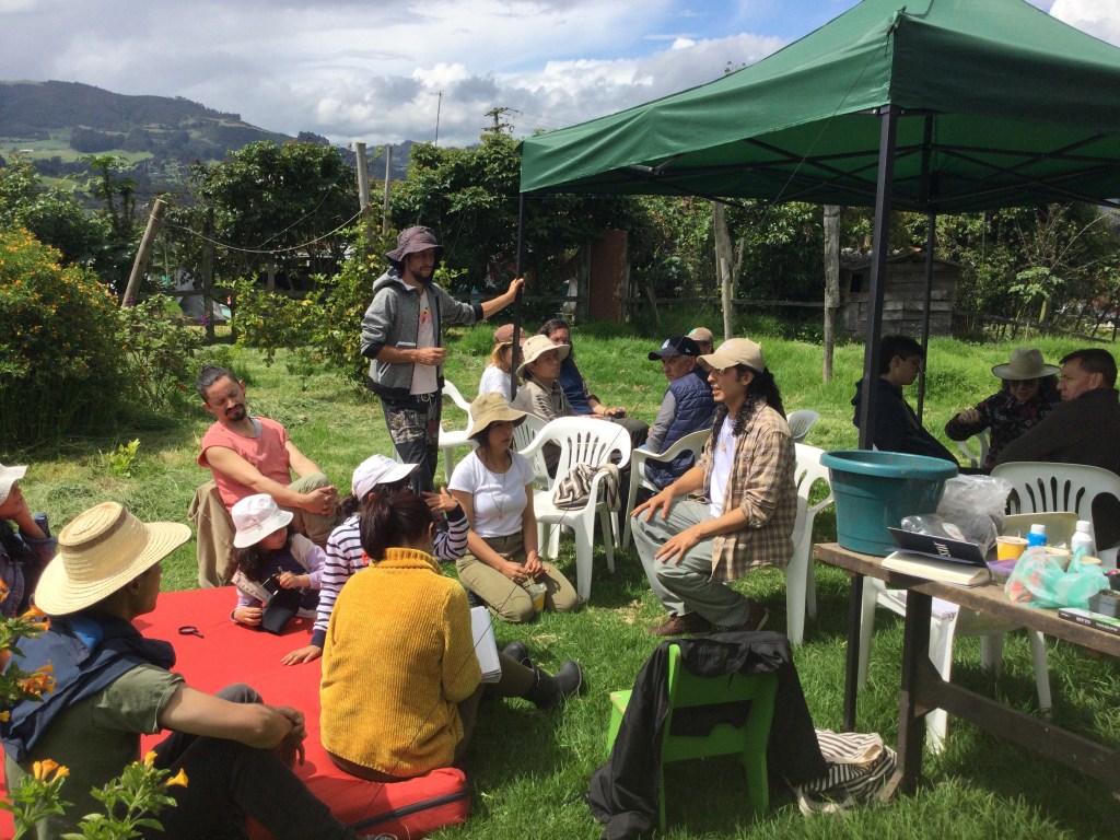 Este proyecto inició en marzo del 2022, y gracias al trabajo constante de David, yo (Adriana), Nina y Emmanuel (los más chiquis), hemos logrado crear un espacio en donde materializar nuestro amor por la Tierra, la urgencia de amistarnos con otras formas de vida y de pasarla bien, reírnos y jugar. De esa forma, un predio de Tabio Cundinamarca, dedicado a la cría de vacas, es ahora un lugar donde crear comunidad con todas las formas de vida con las cuales estamos intrínsecamente conectados. Para lograrlo sembramos árboles, construimos un espacio educativo, iniciamos un lombricompost, tenemos gallinas campesinas, cabras y chivas, hicimos una huerta, sembramos una cerca viva que atrae los pájaros y los polinizadores y terminamos un muro de escalar abierto al público. Pero sobre todo, nos hemos dado el espacio de compartir, conocernos, entender los retos que trae el crear una comunidad y alinear nuestras emociones y sentimientos con el sentir de los demás seres.